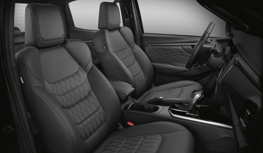 Isuzu ergonomiskie sēdekļi ir veidoti no vibrācijas slāpējoša elastīga komforta putu materiāla ar standarta aprīkojumā iekļautām apsildes un jostasvietas atbalsta funkcijām. Augstākajos aprīkojuma līmeņos ir pieejams 8 virzienos elektriski regulējams vadītāja sēdeklis ar leņķa regulēšanu un ādas sēdekļi.